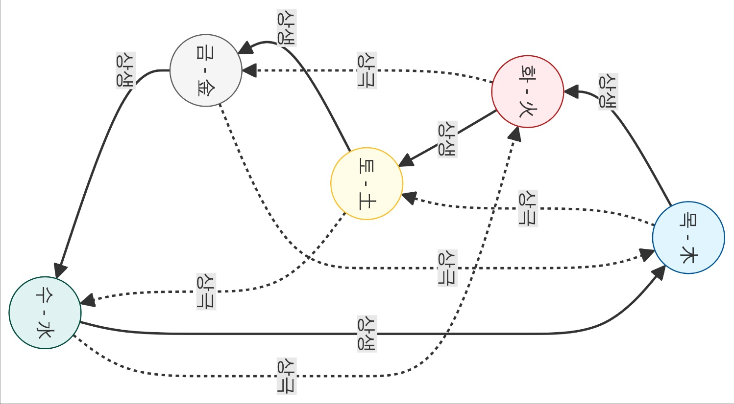 반면 화와 토가 일곱 글자를 차지하고 있습니다.